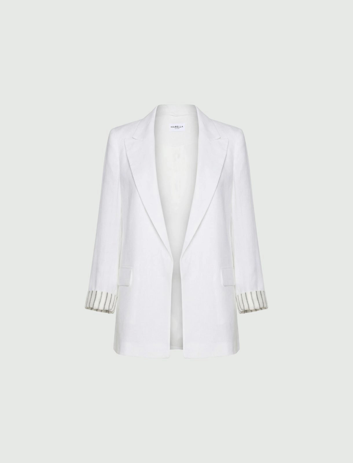 This flowing and light pure linen blazer is worn with the sleeves turned up, thanks to the contrasting lining.
