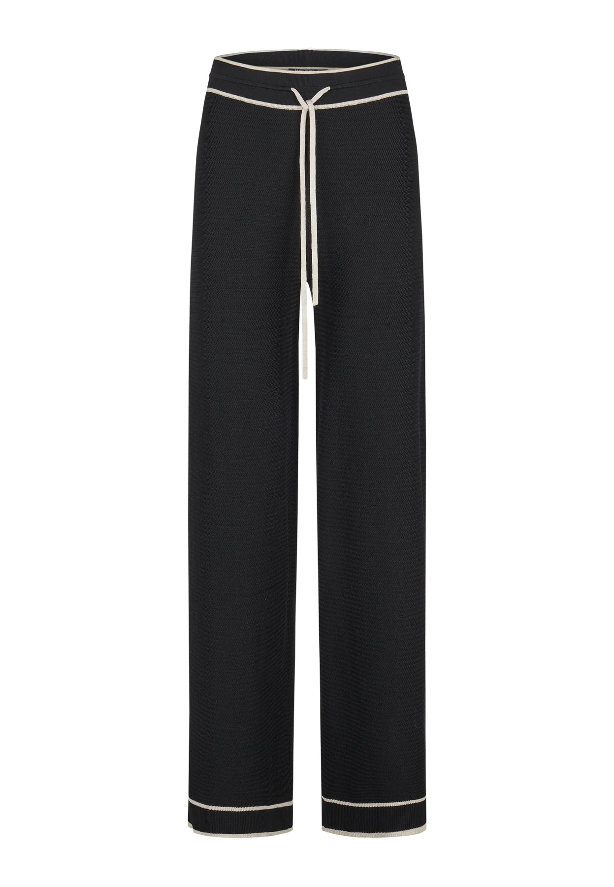 Made from a comfortable viscose blend, these knit pants are extremely comfortable to wear. A tie waistband allows for a customized fit, while contrasting stripes add a sporty, graphic touch to the design. Perfect for a fashionable look.