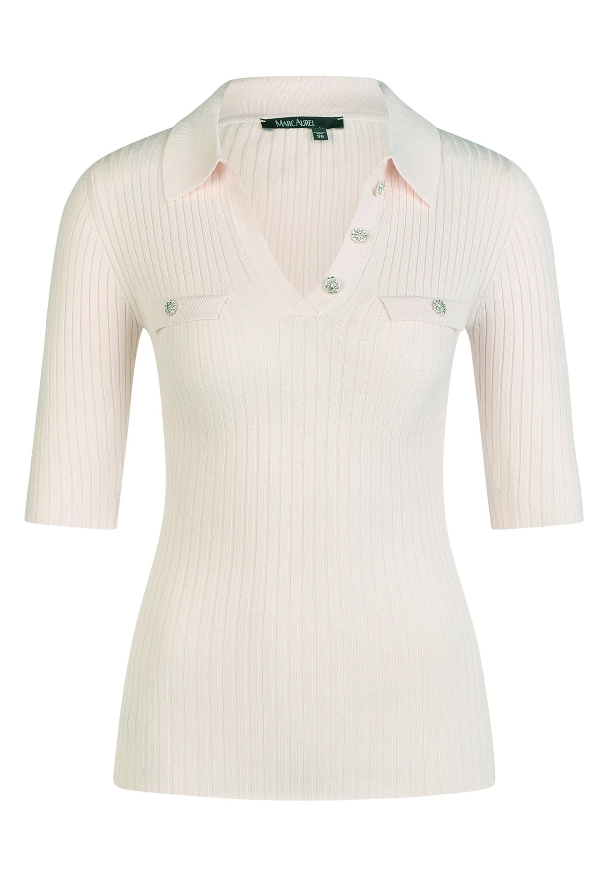 This soft viscose rib shirt brings modern style to everyday wear with an open polo collar and shiny decorative buttons. The flat rib knit ensures a supple fit, while the viscose blend makes it comfortable to wear.