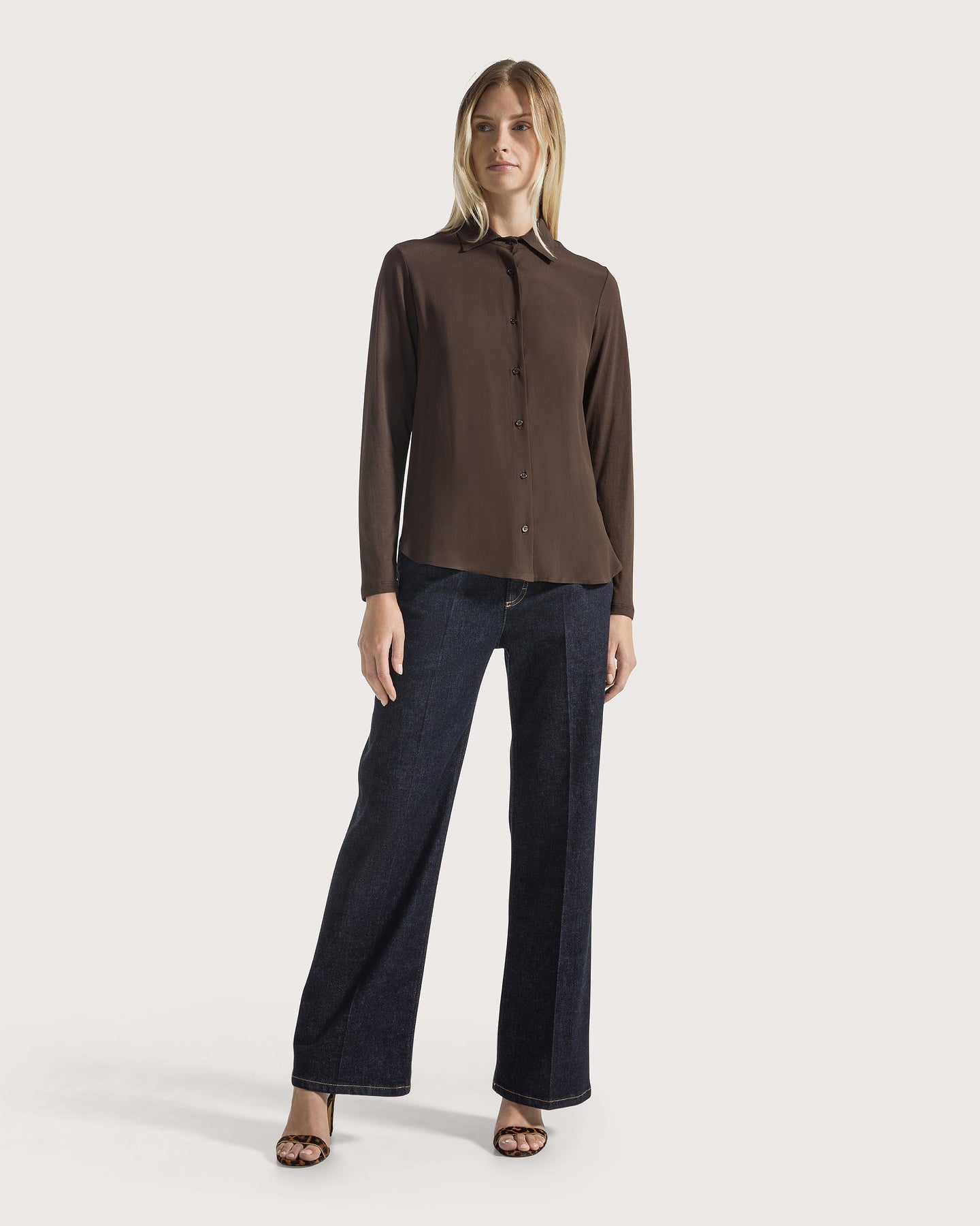 Blended Silk Open Shirt Deep Brown