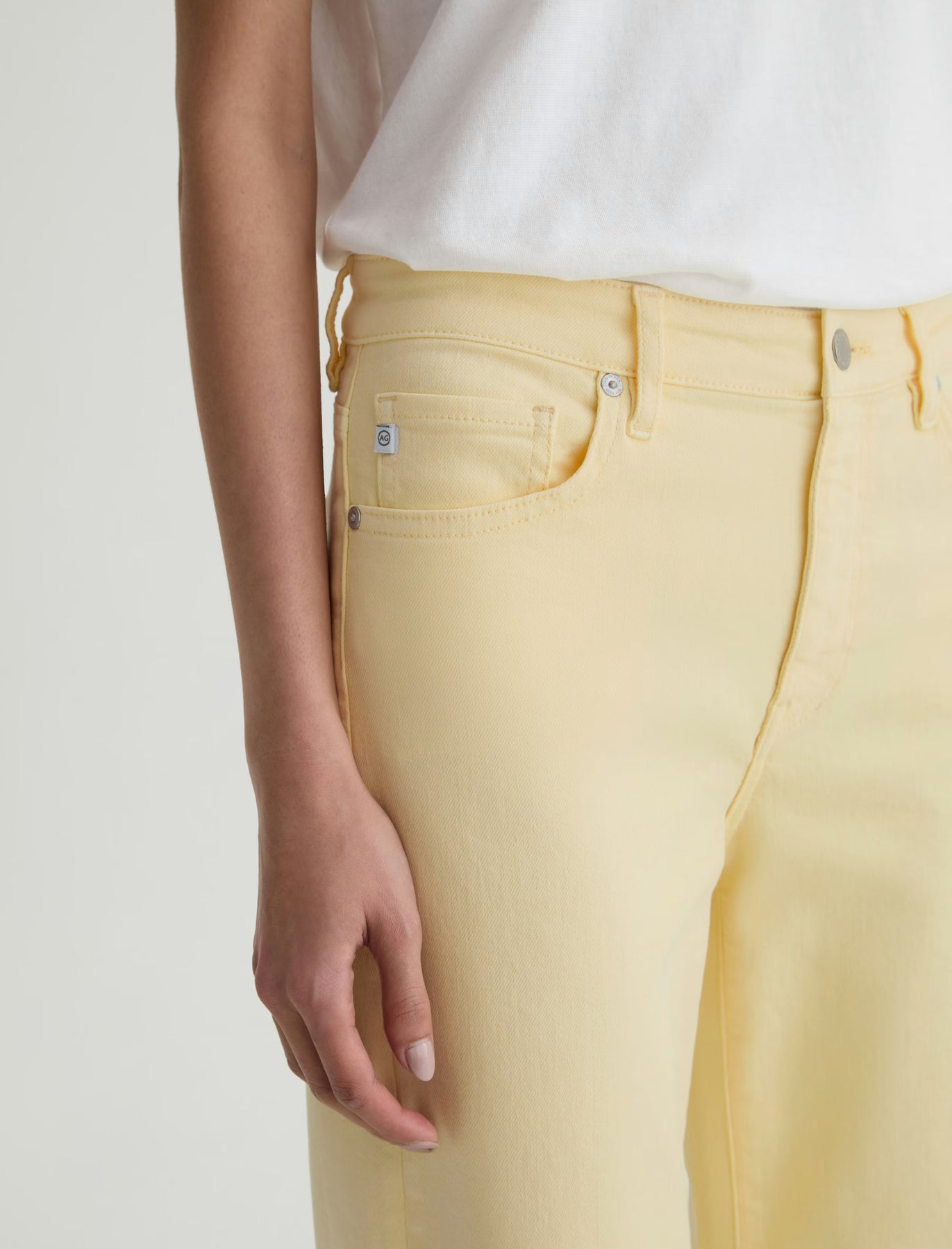Saige Wide Leg Crop is crafted from AG Cloud Soft Denim™, a special left-hand twill construction that allows the yarns to relax and untwist for a luxe, supple feel. This mid-rise jean is adored for its easy, relaxed silhouette and cropped leg. Designed in our soft yellow wash, Sunlight Yellow, and finished with a raw-cut hem for a contemporary edge.