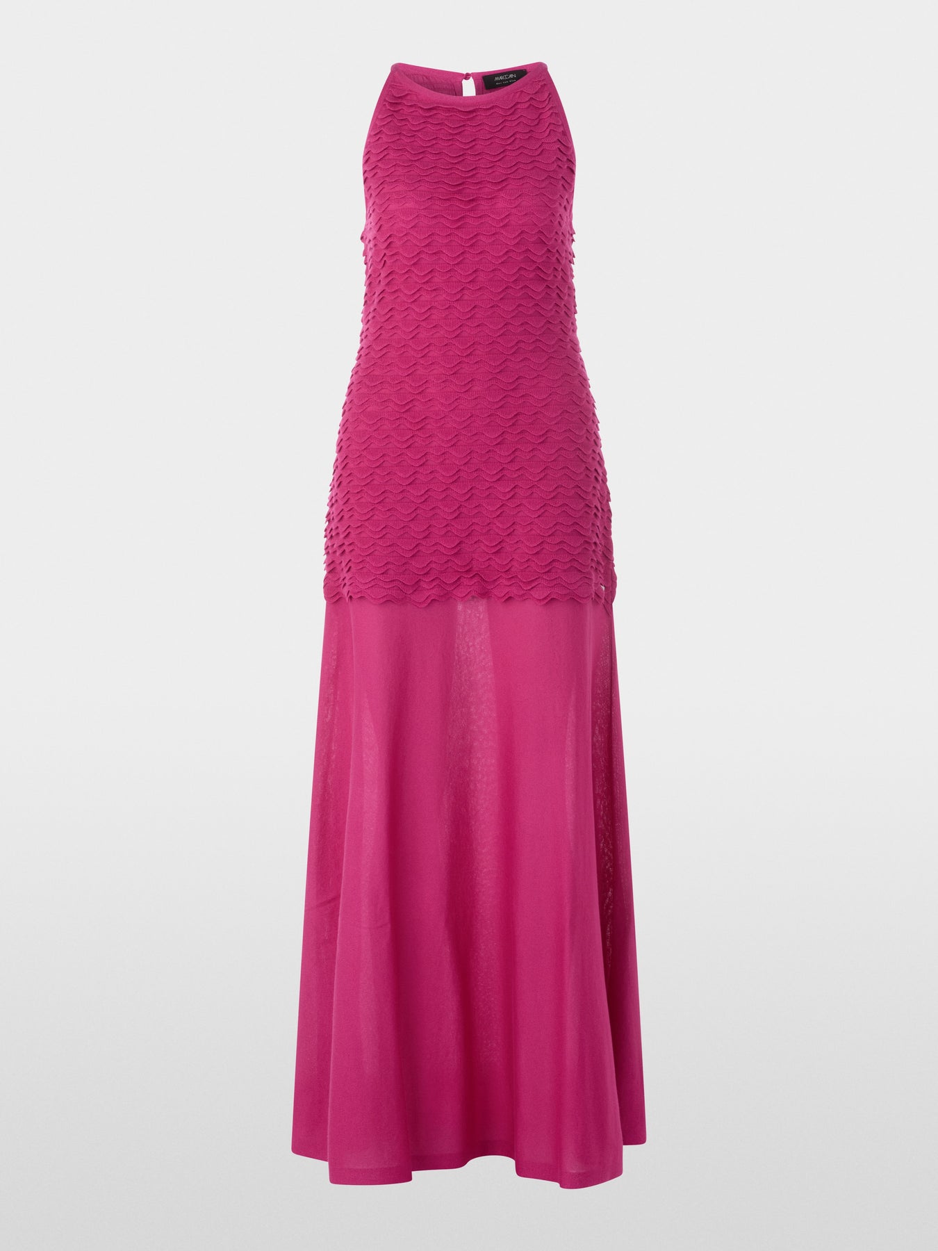 Lightweight maxi knit dress made of soft viscose with a flared skirt for flowing movement. The upper section is crafted in an elegant wave design; slim straps and the sleeveless cut add feminine accents. Made without a lining for pleasant lightness.