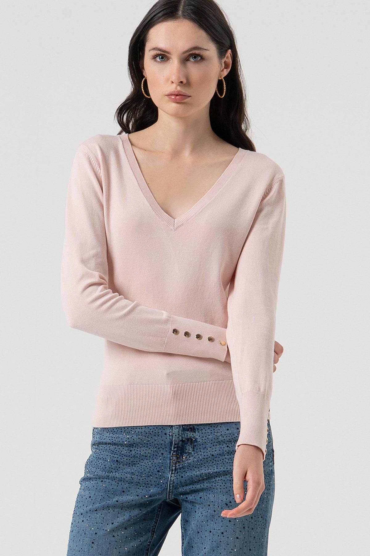 Knitwear regular fit with V-neck drop and long sleeves with small buttons at the cuffs