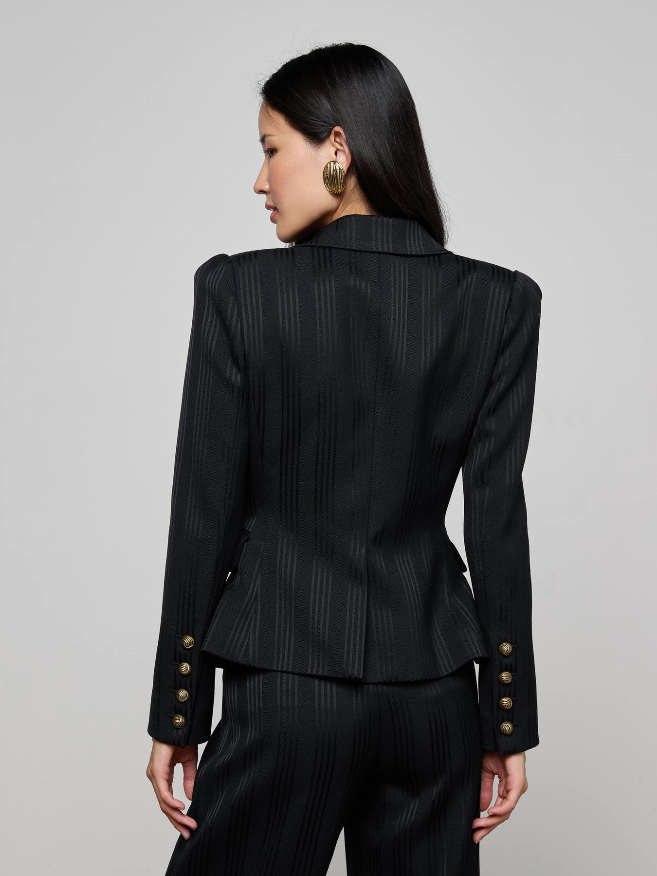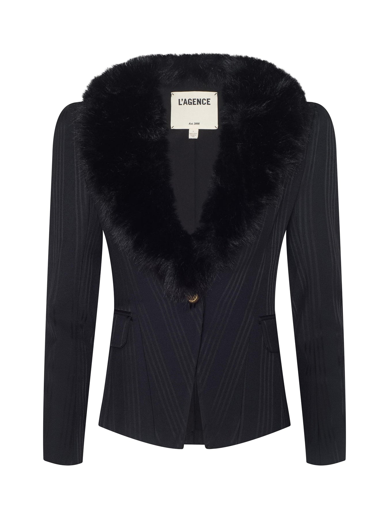 Kaisley Faux Fur Collar Blazer Black Shadow Stripe-L&