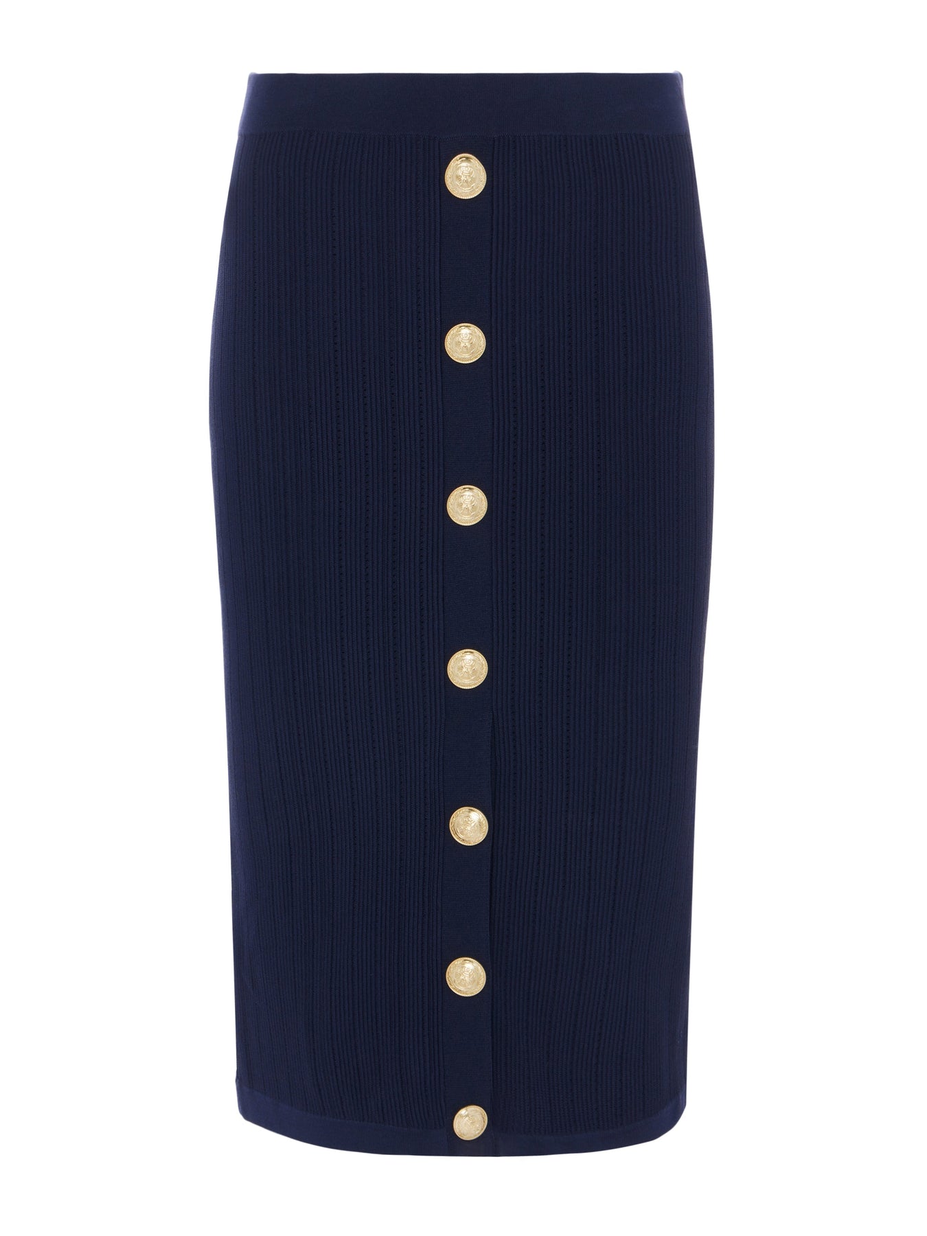 Slim, sleek, and utterly chic. A delicate pointelle rib-knit enhances the figure-hugging fit of the Melania skirt. An elasticized waistband offers ease of wear. Functional lower buttons allow you to customize the look. Coordinate with the matching Irvin for a polished suiting alternative. Undo lower buttons for a night on the town.