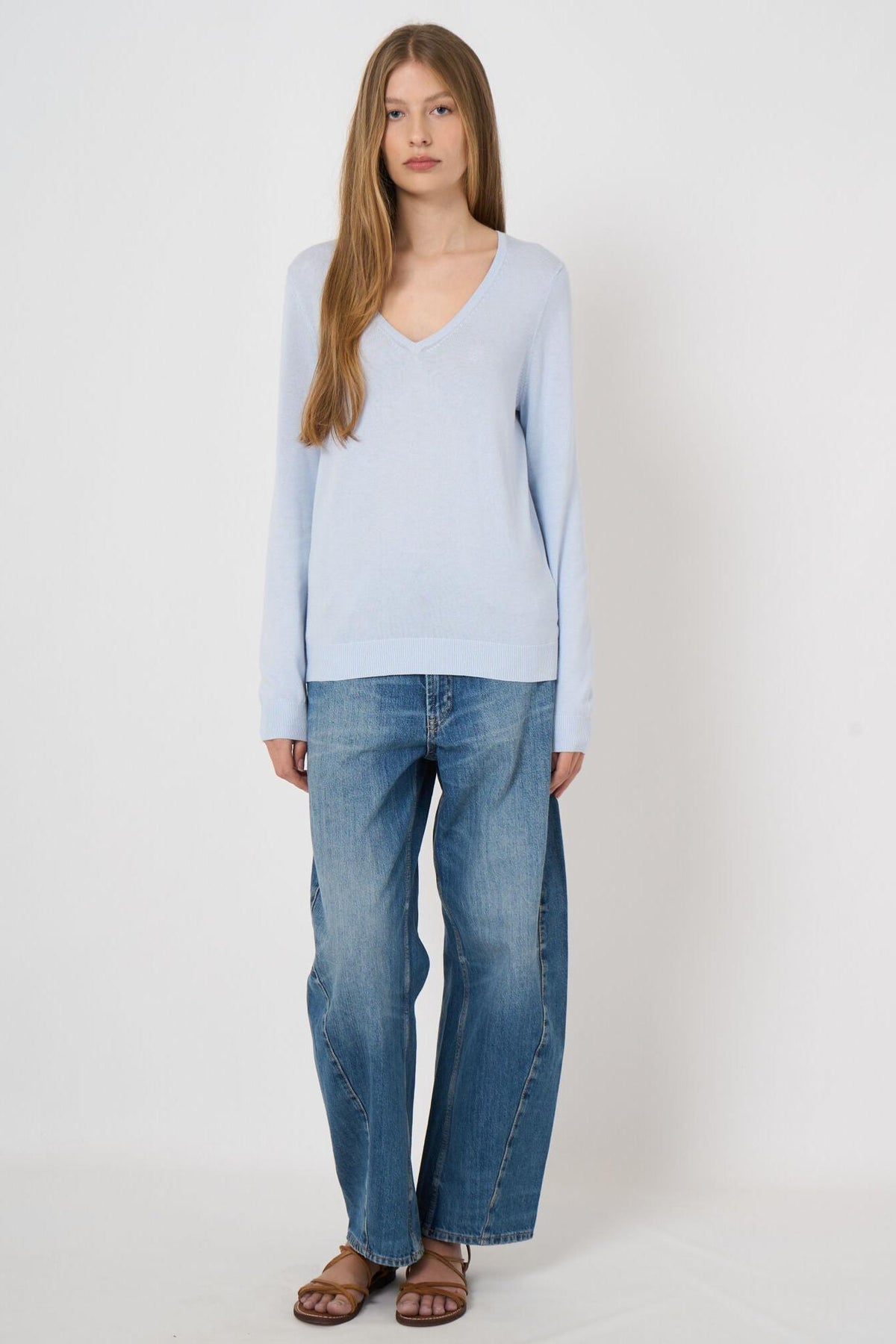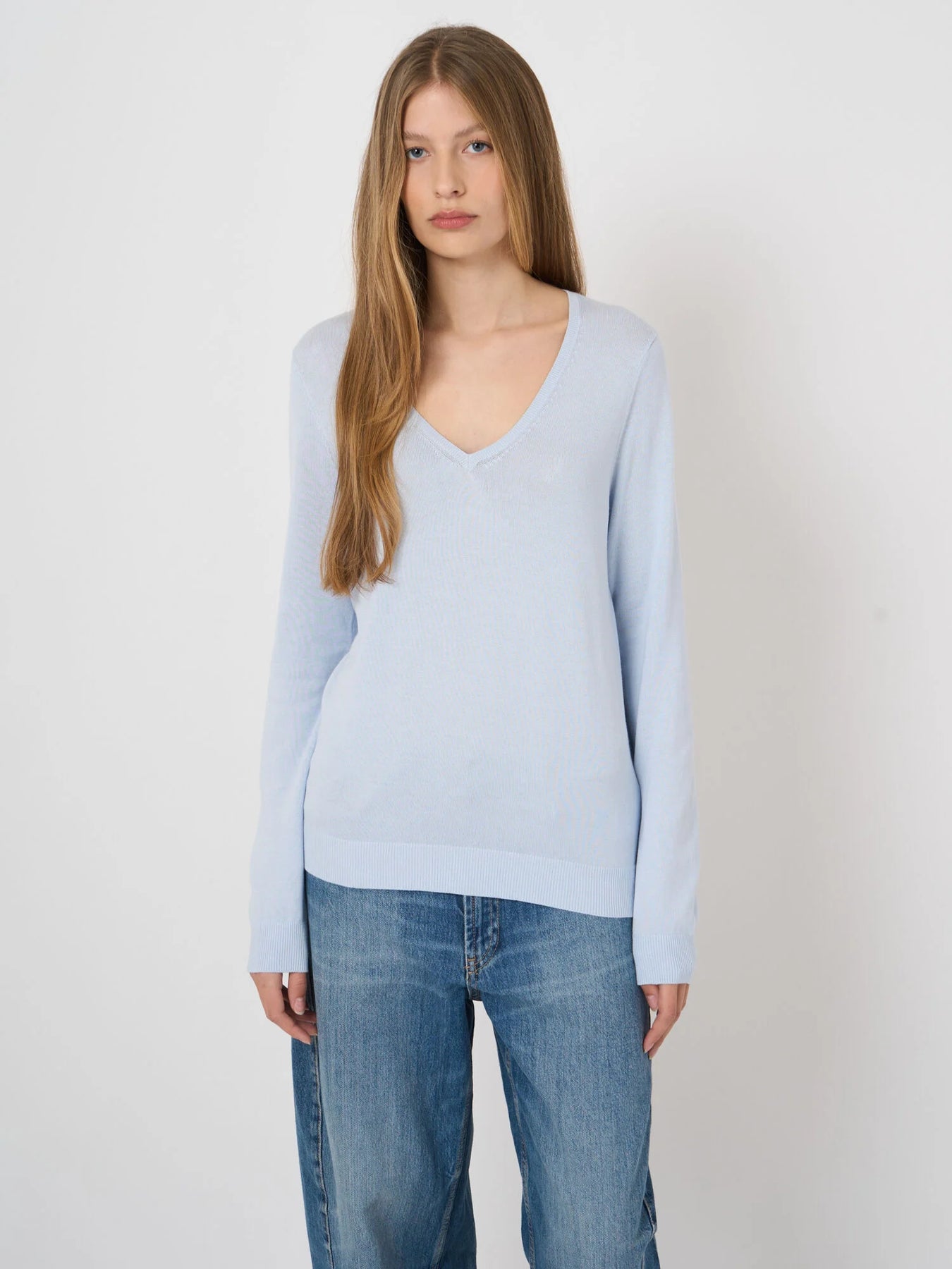 Fine-Knit Cotton-Blend V-Neck Sweater Ocean