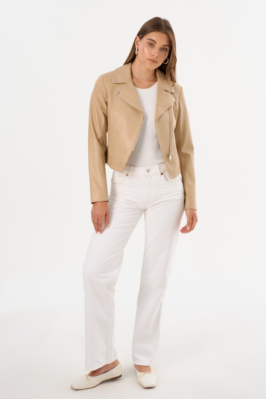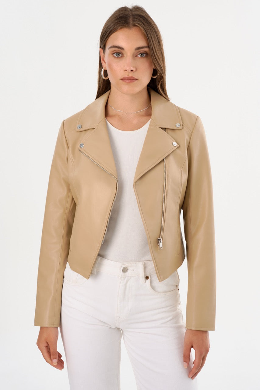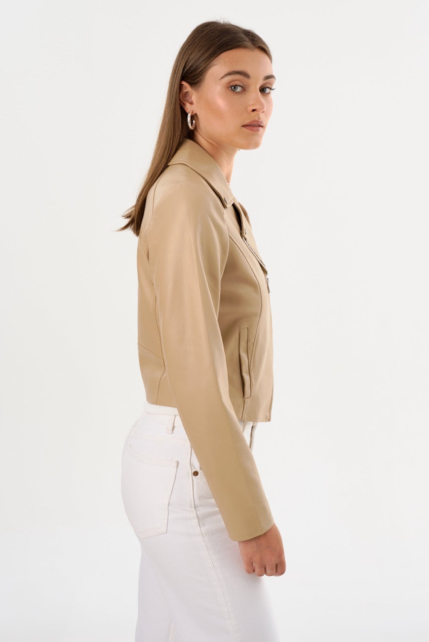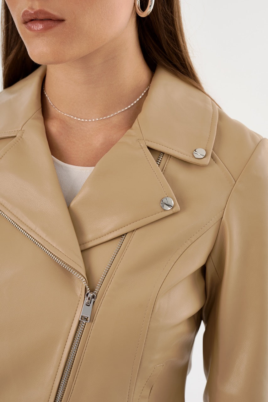 The PASCALE Fitted Leather Jacket is the perfect addition to the modern woman's wardrobe. It features a front diagonal zip, snap collar and lapel, and a minimalistic design. Flattering to the figure with its fitted cut, this jacket effortlessly blends style and minimalism, making it suitable for day-to-night wear.