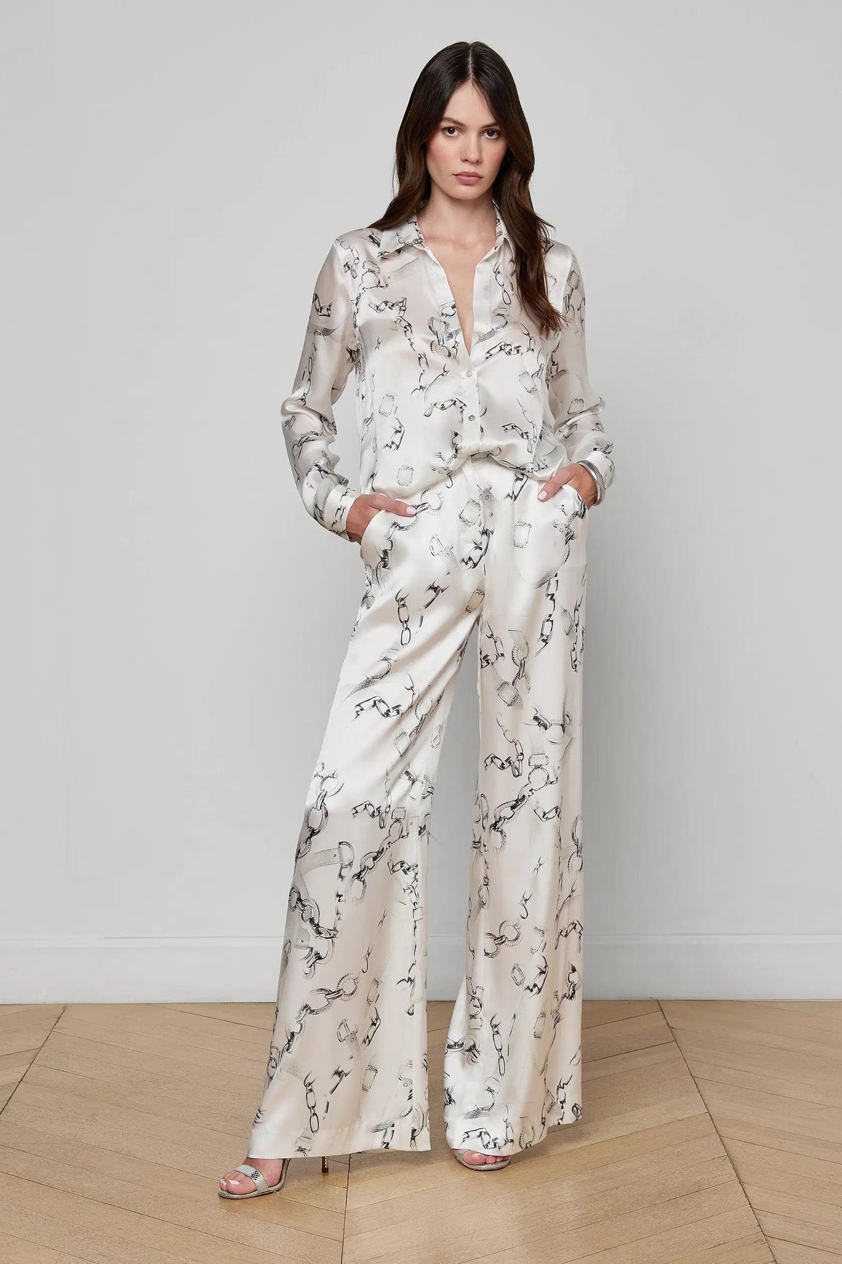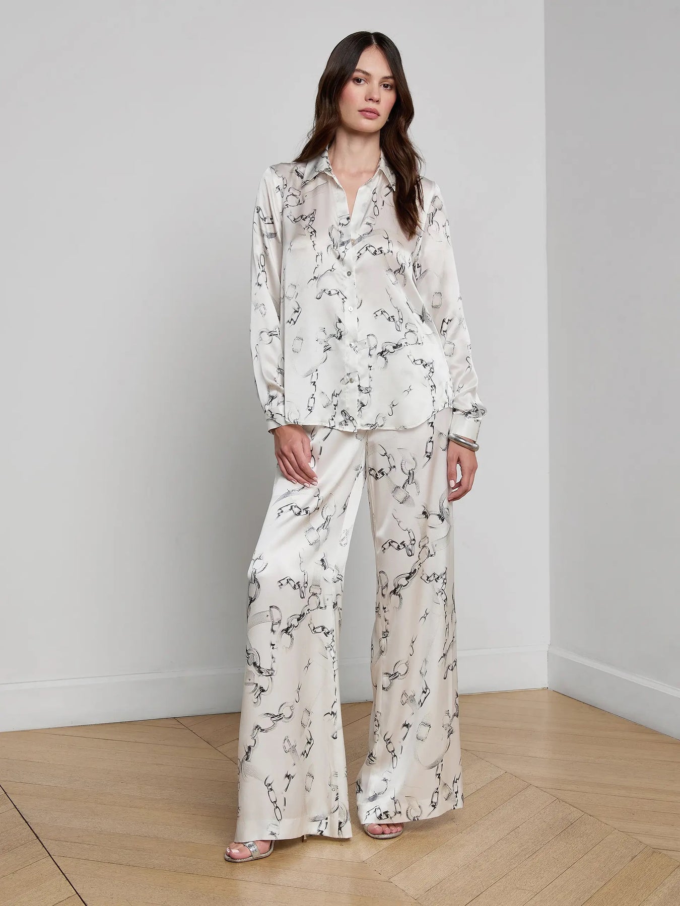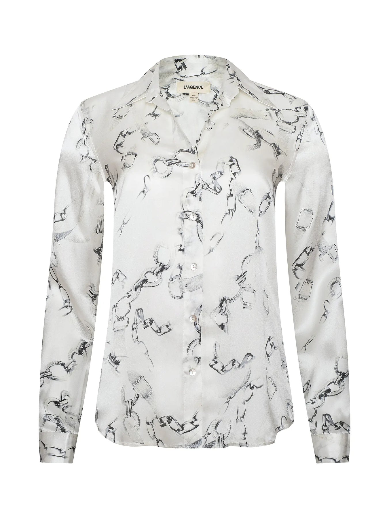 Meet the iconic long-sleeve silk button-down that belongs in every wardrobe. Reimagined each season in fresh colorways and prints, there’s a Tyler for every occasion. This L'AGENCE bestseller is now back in a gray chain print.