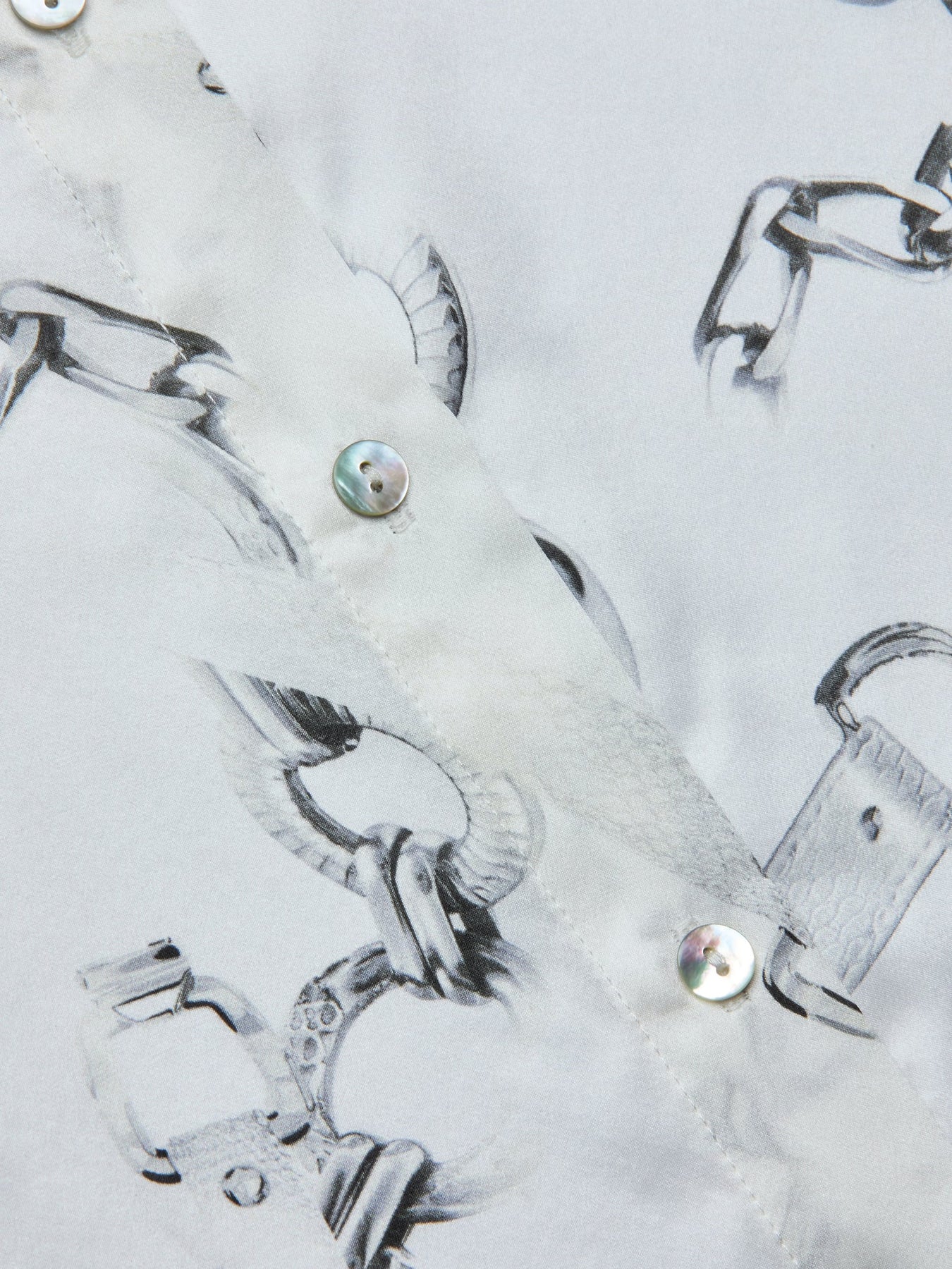 Tyler Silk Blouse Ivory/Grey Small Faded Chain