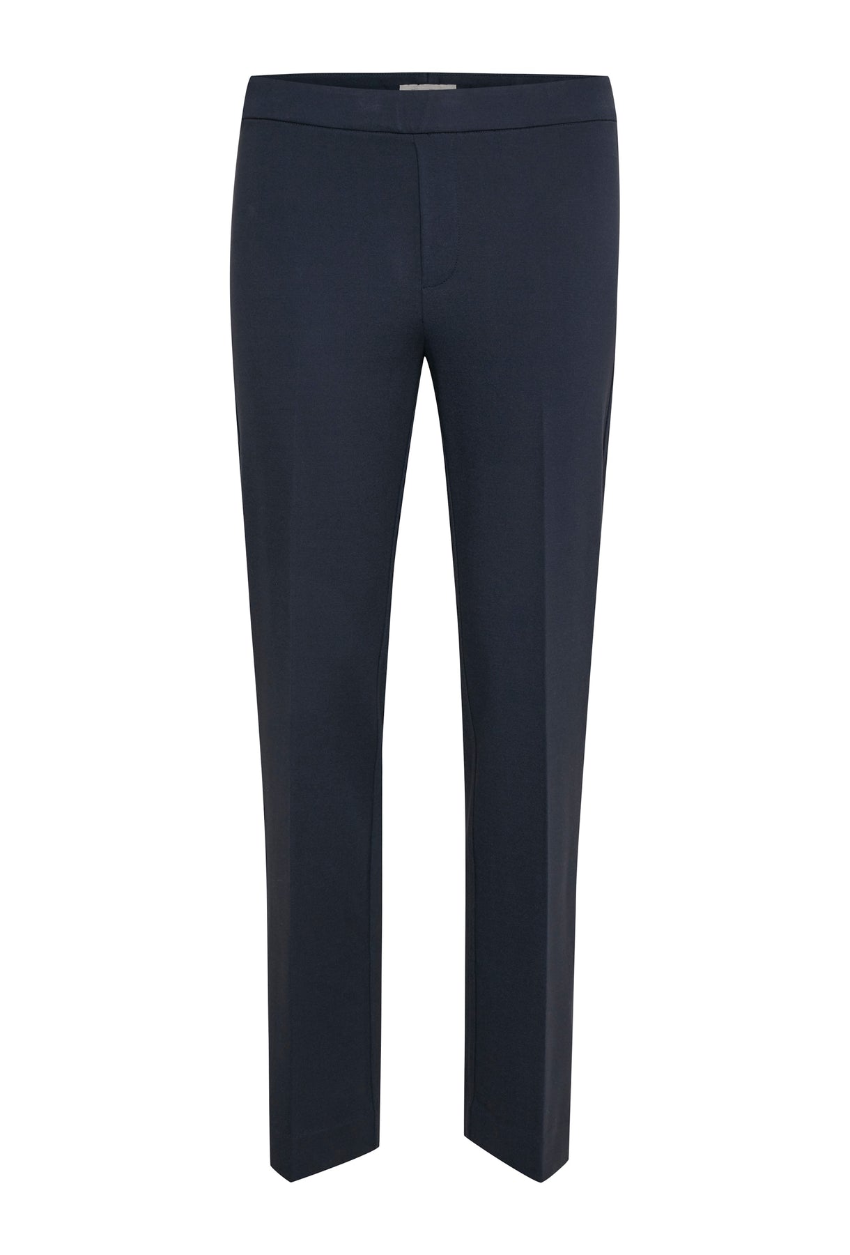 The model is 178 cm tall and wears a size 36. These classic straight-leg trousers come in an elegant navy tone and are made from a smooth, structured fabric with stretch for comfort. The minimalist style and clean cut make them perfect for both office and everyday wear. Pair with a shirt or knit for a polished look.