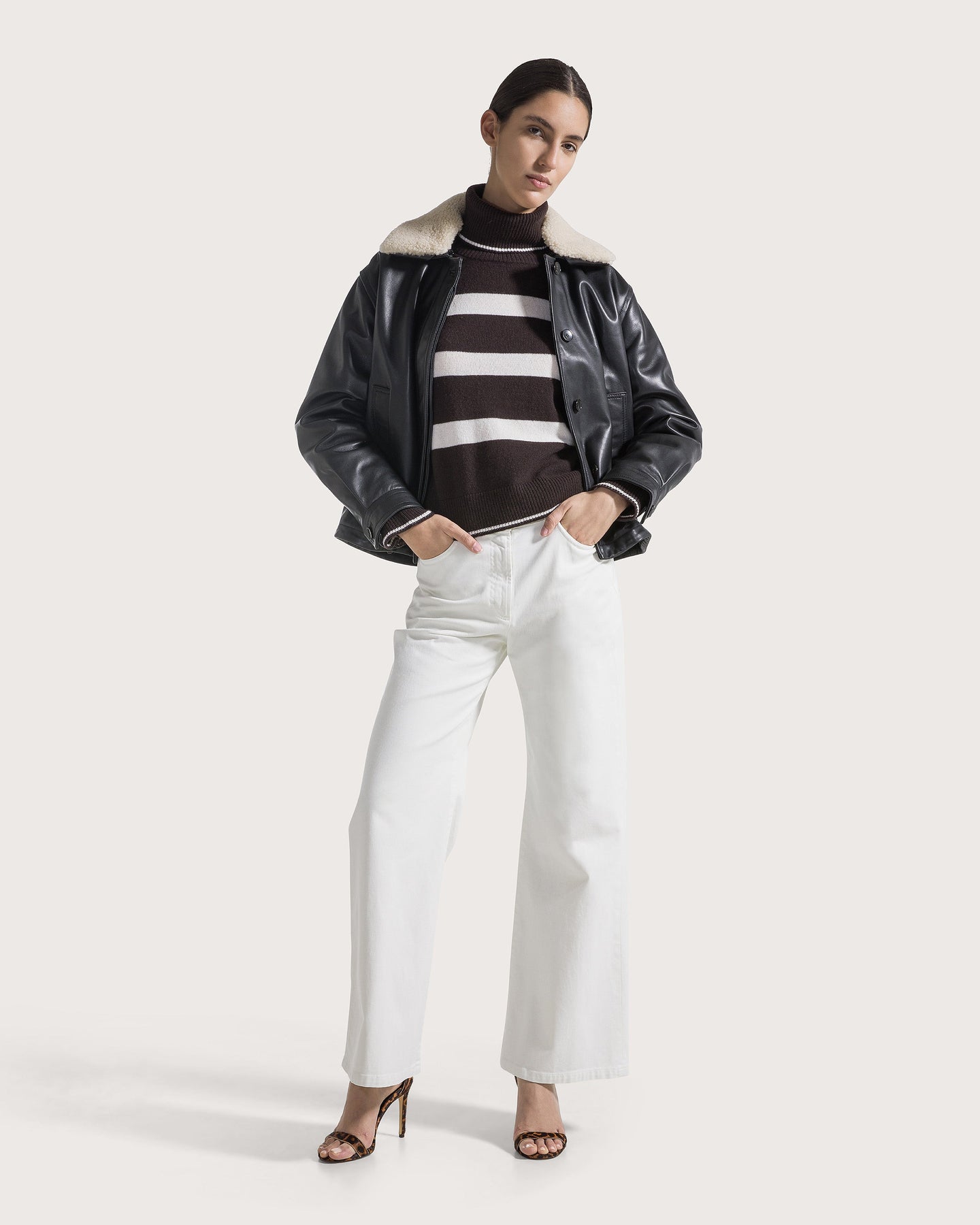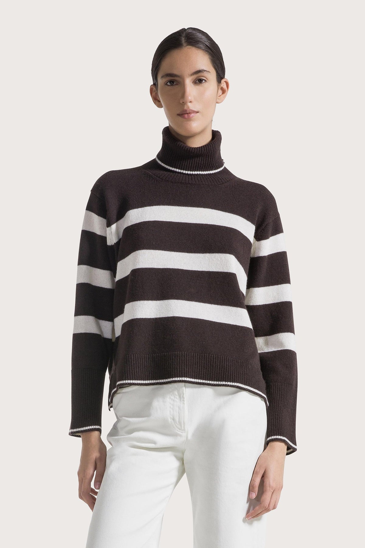 Striped Turtleneck Sweater Deep Brown/White-Seventy-Tocca Finita