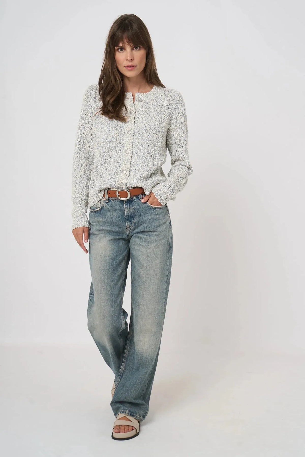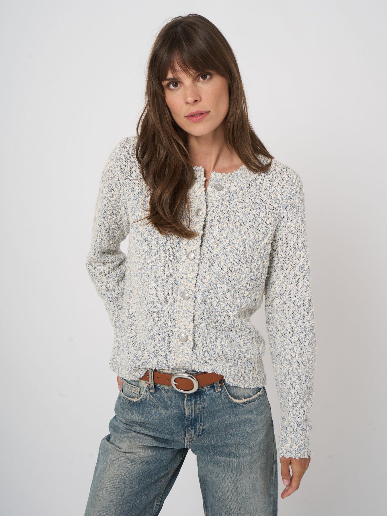 Textured Italian Cotton-Blend Cardigan Denim