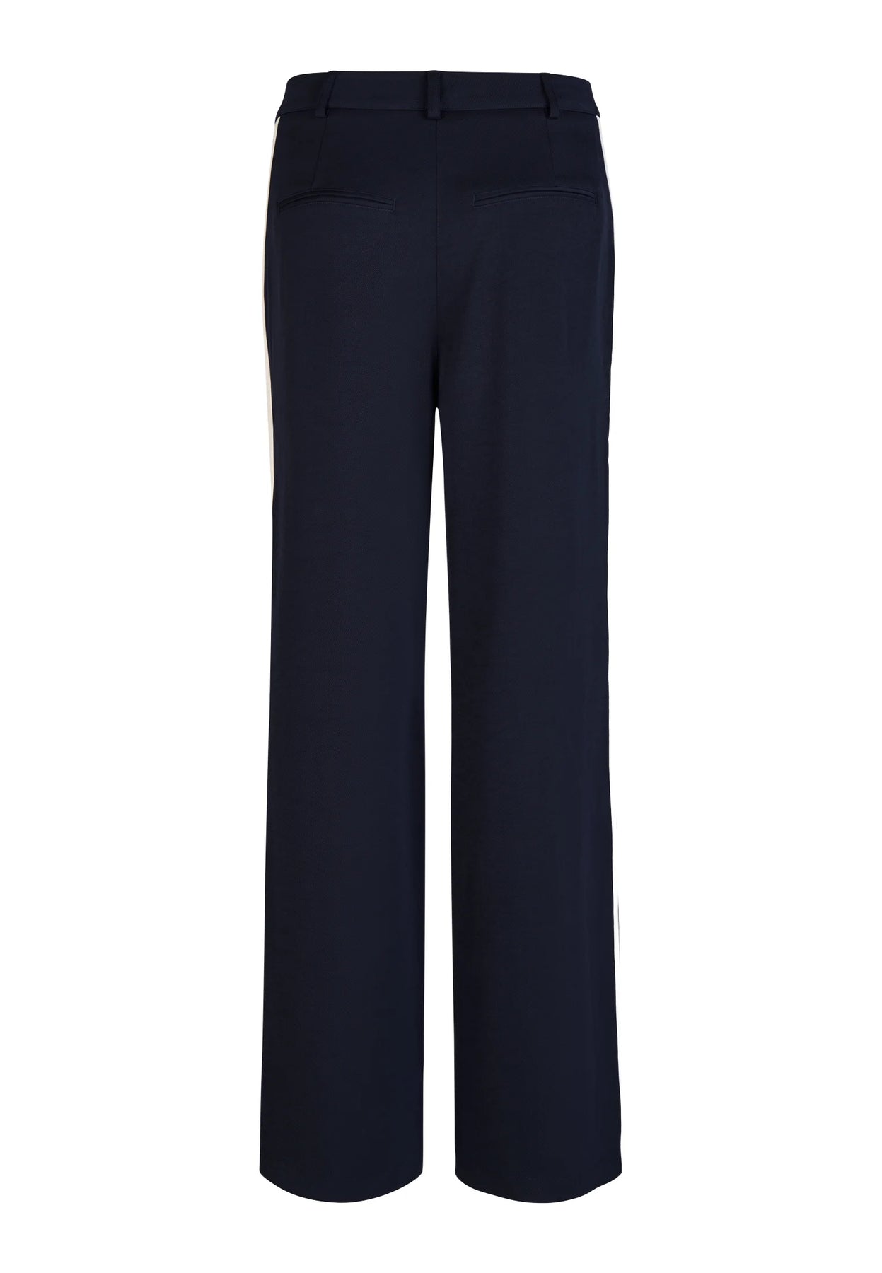 With their softly draping twill fabric, these pants perfectly balance casual style and structure. The contrasting side stripes give the design a sporty touch without compromising on elegance. Functional side pockets and a waistband with loops ensure everyday practicality and styling versatility. Piped pockets on the back complete the design. Ideal for modern looks.