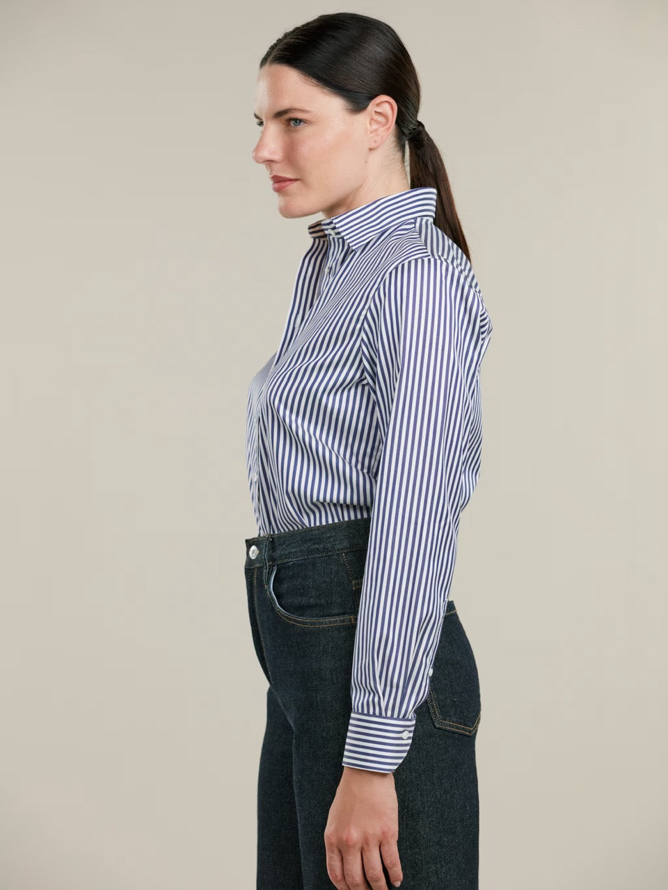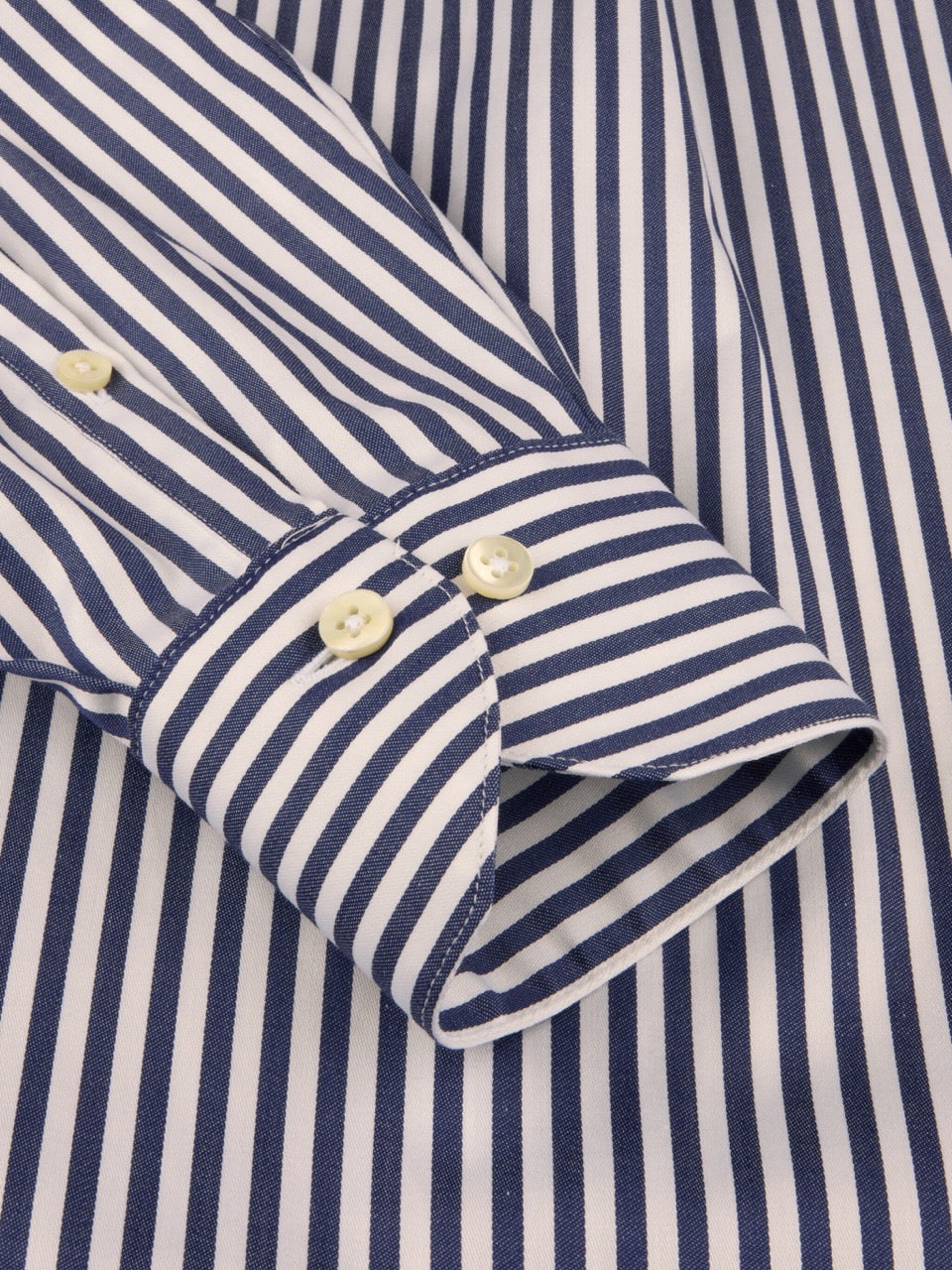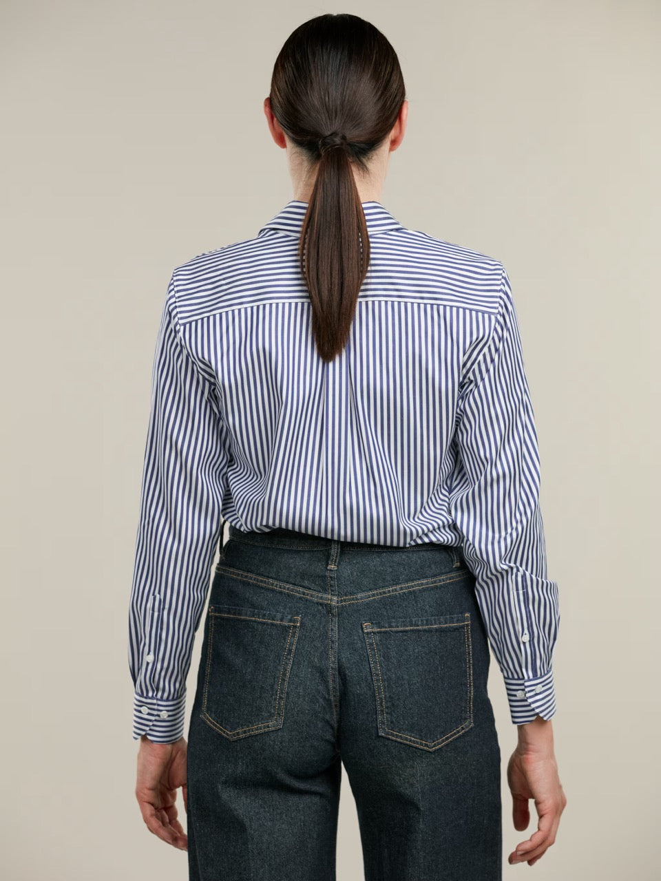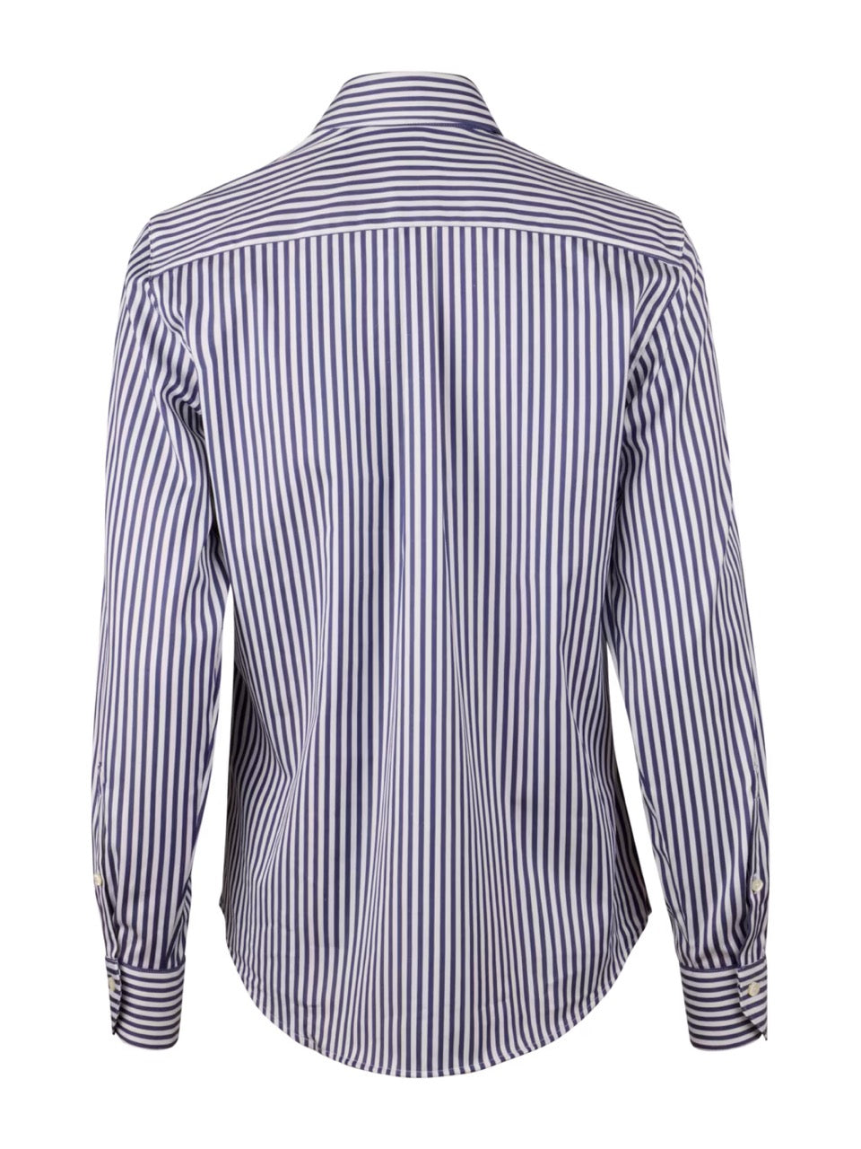 This striped shirt is made of cotton stretch and has a oversized fit. The shirt is detailed with mother of pearl buttons, single cuffs and a classic collar.
