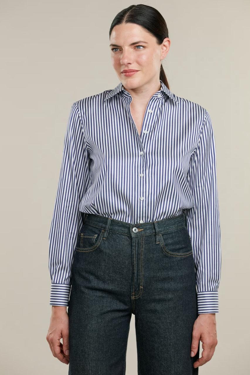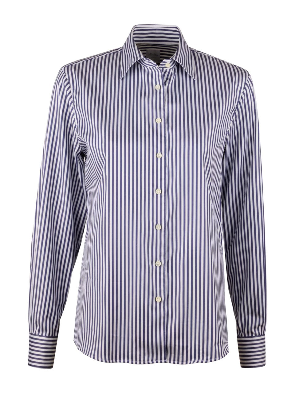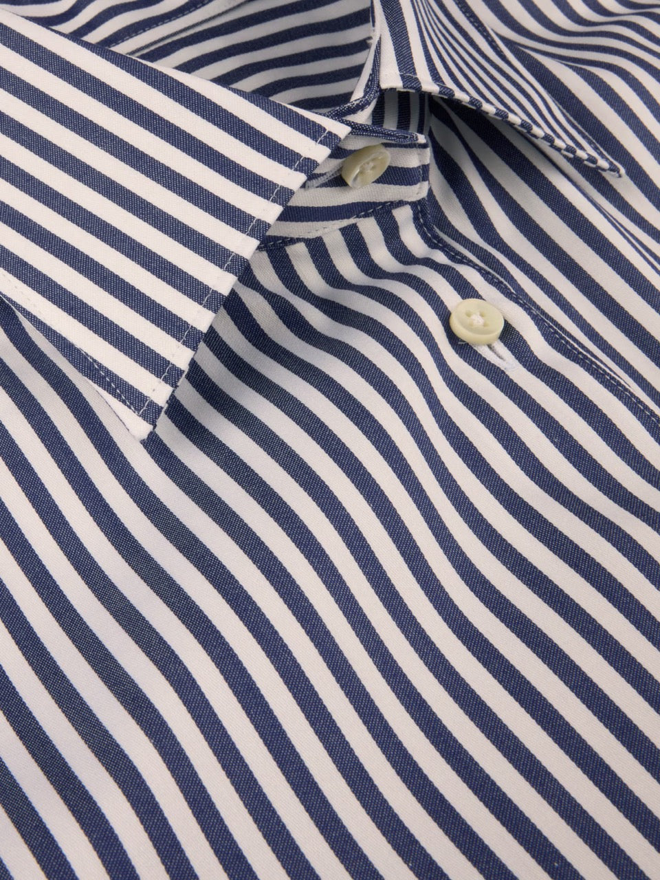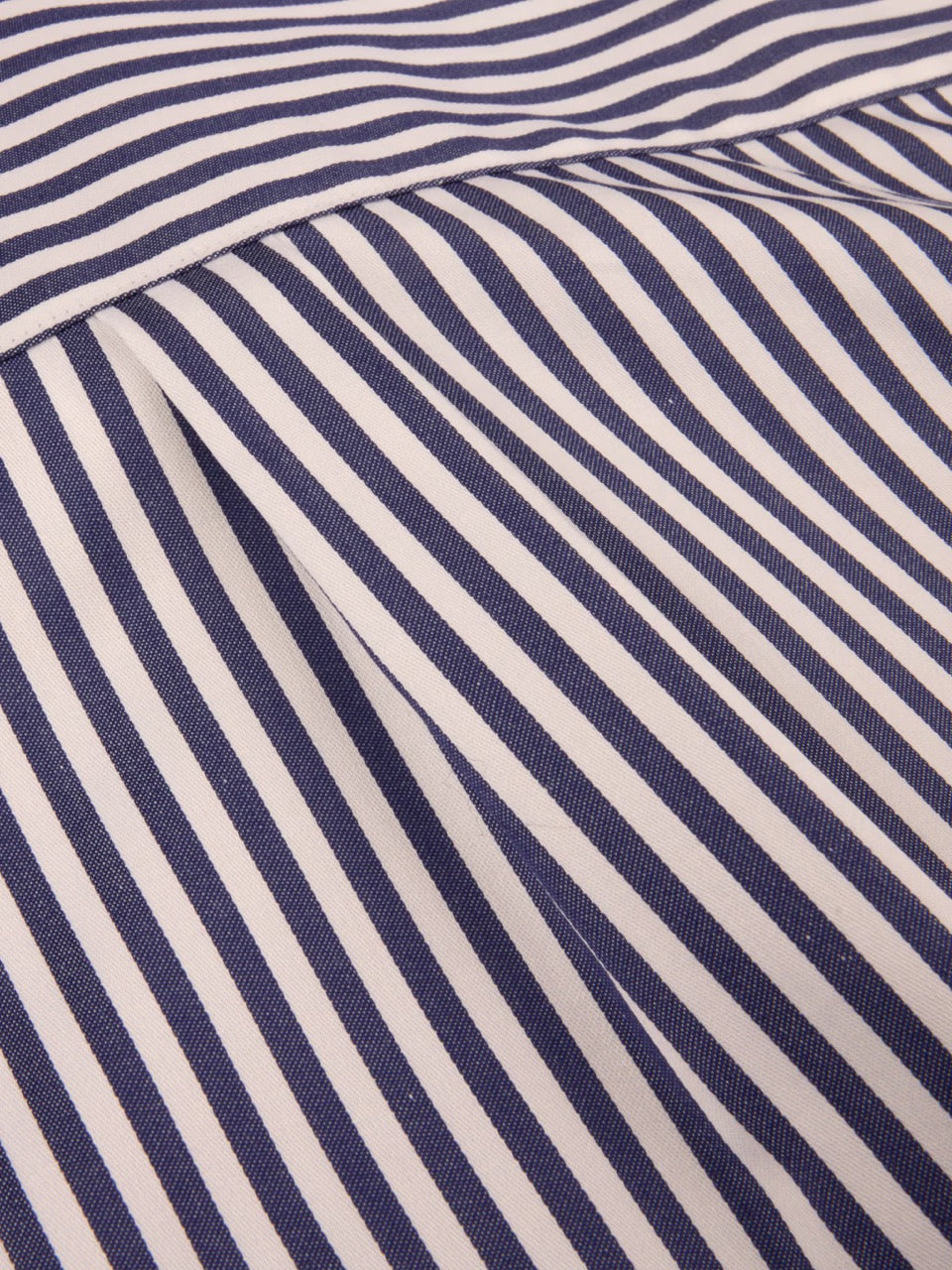 This striped shirt is made of cotton stretch and has a oversized fit. The shirt is detailed with mother of pearl buttons, single cuffs and a classic collar.
