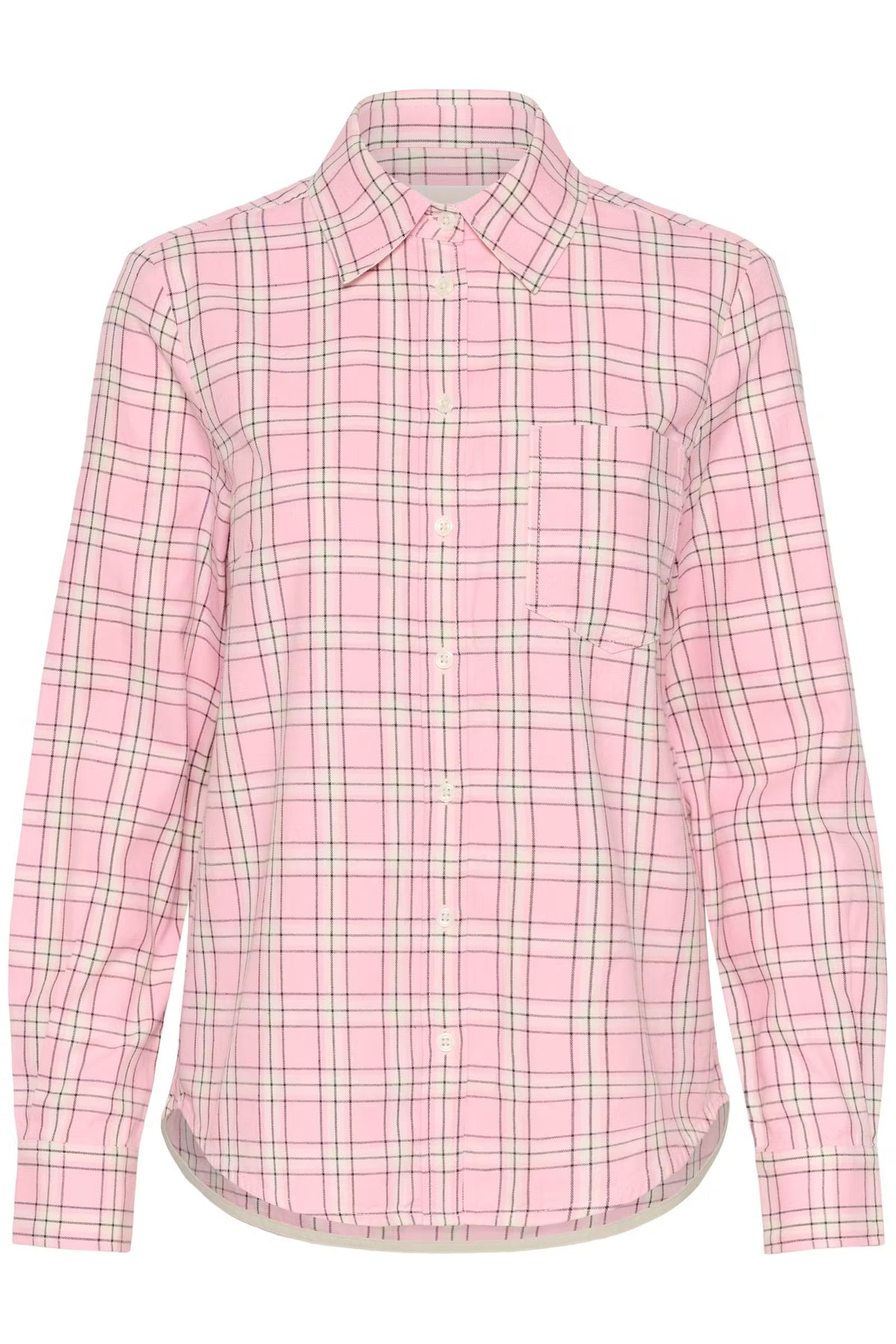 The model is 174 cm tall and wears a size 36. This checked shirt in soft pink tones features a classic fit with a chest pocket and collar. The rollable sleeves with contrast lining add a relaxed touch. Perfect with both jeans and tailored trousers – for everyday wear or laid-back moments.