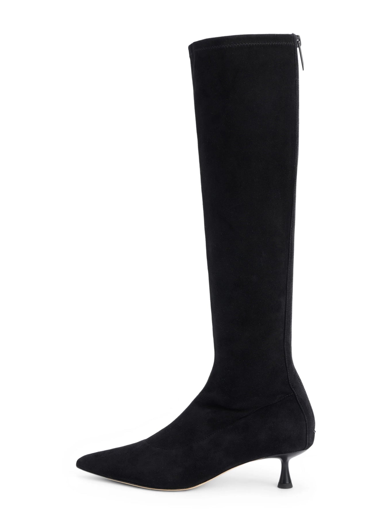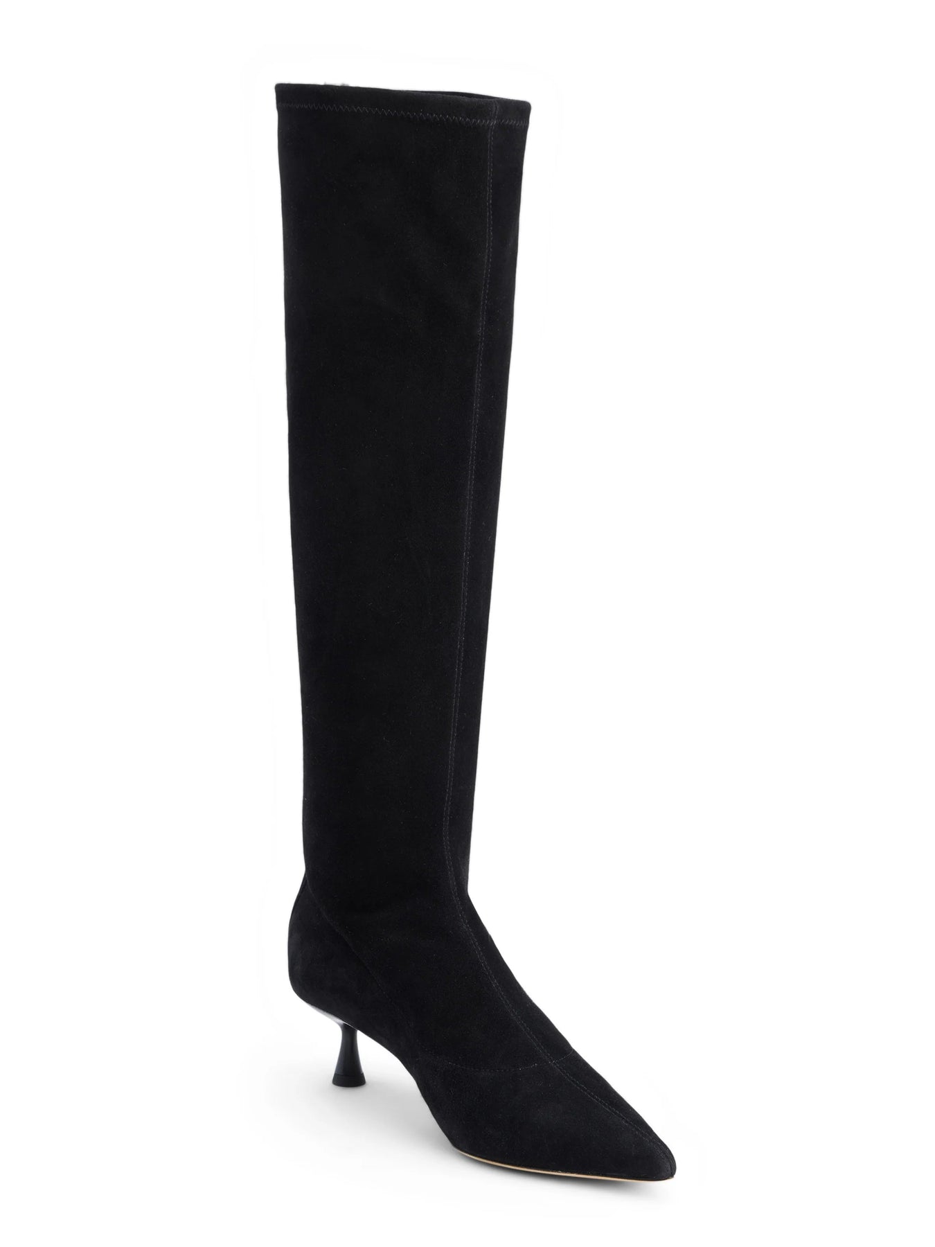 Designed to feel as easy as a flat with the polish of a heel, the Emilie boot blends sleek sophistication with all-day comfort. The kitten-heel style is crafted in stretch suede with a pointed toe and is perfect with dresses, skirts, or slim denim—you name it.