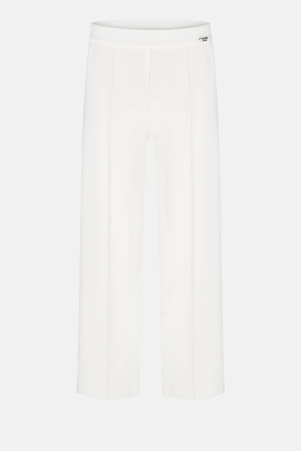 CAMERON culottes in a cropped length. Lightweight polyester bistretch ensures a smooth, soft feel and comfortable wear. Thanks to the easy-care principle, these trousers are uncomplicated for everyday use and particularly easy to care for. The elasticated waistband provides a comfortable fit, while the subtle CAMBIO logo on the front adds a touch of style. Available in off-white and brown.