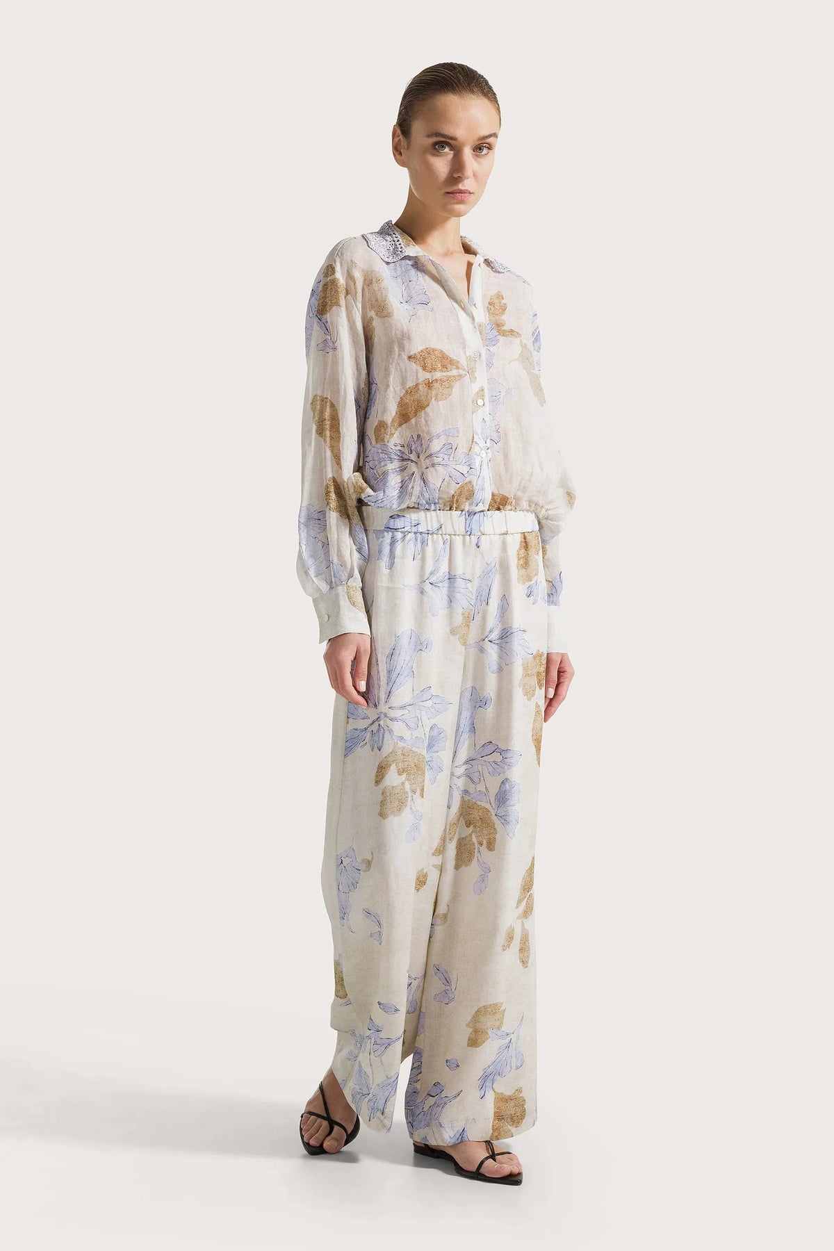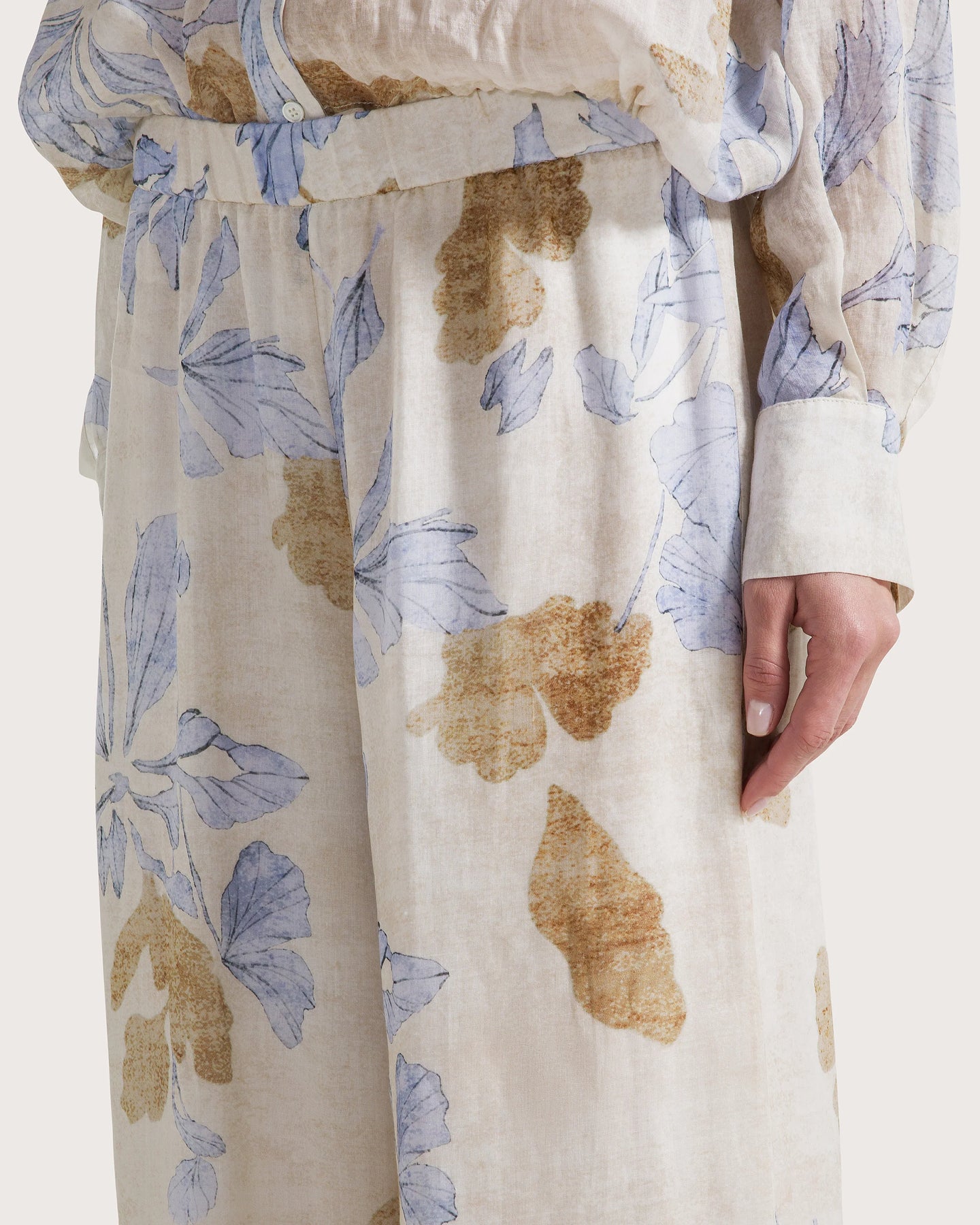 Elasticated pants in printed voile Azzurro