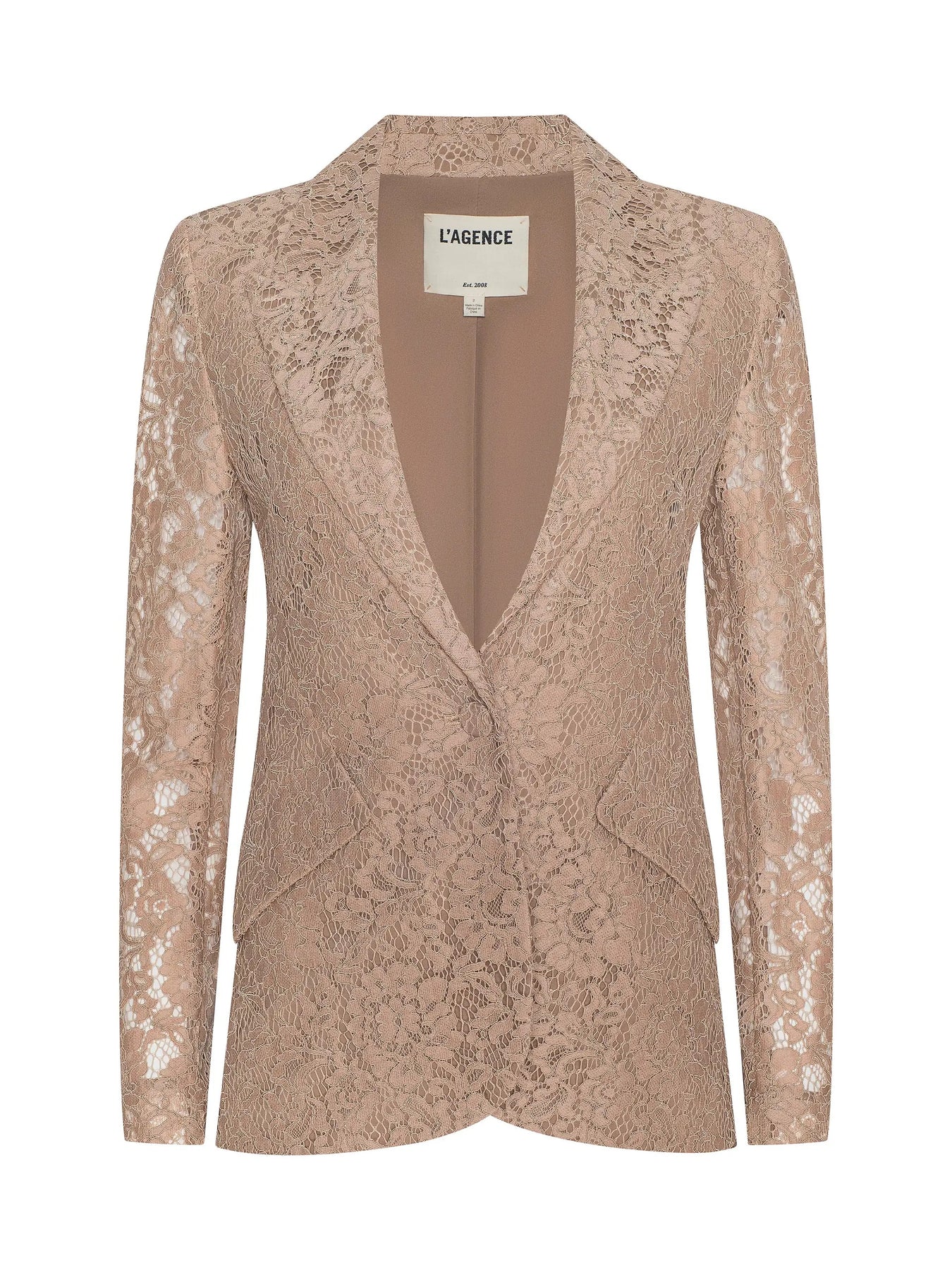 Our bestselling single-breasted blazer is now back in neutral floral lace. Layer it over jeans and a tee for a feminine take on office-ready style or pair it with the coordinating trouser for a sexy spin on a classic suit.