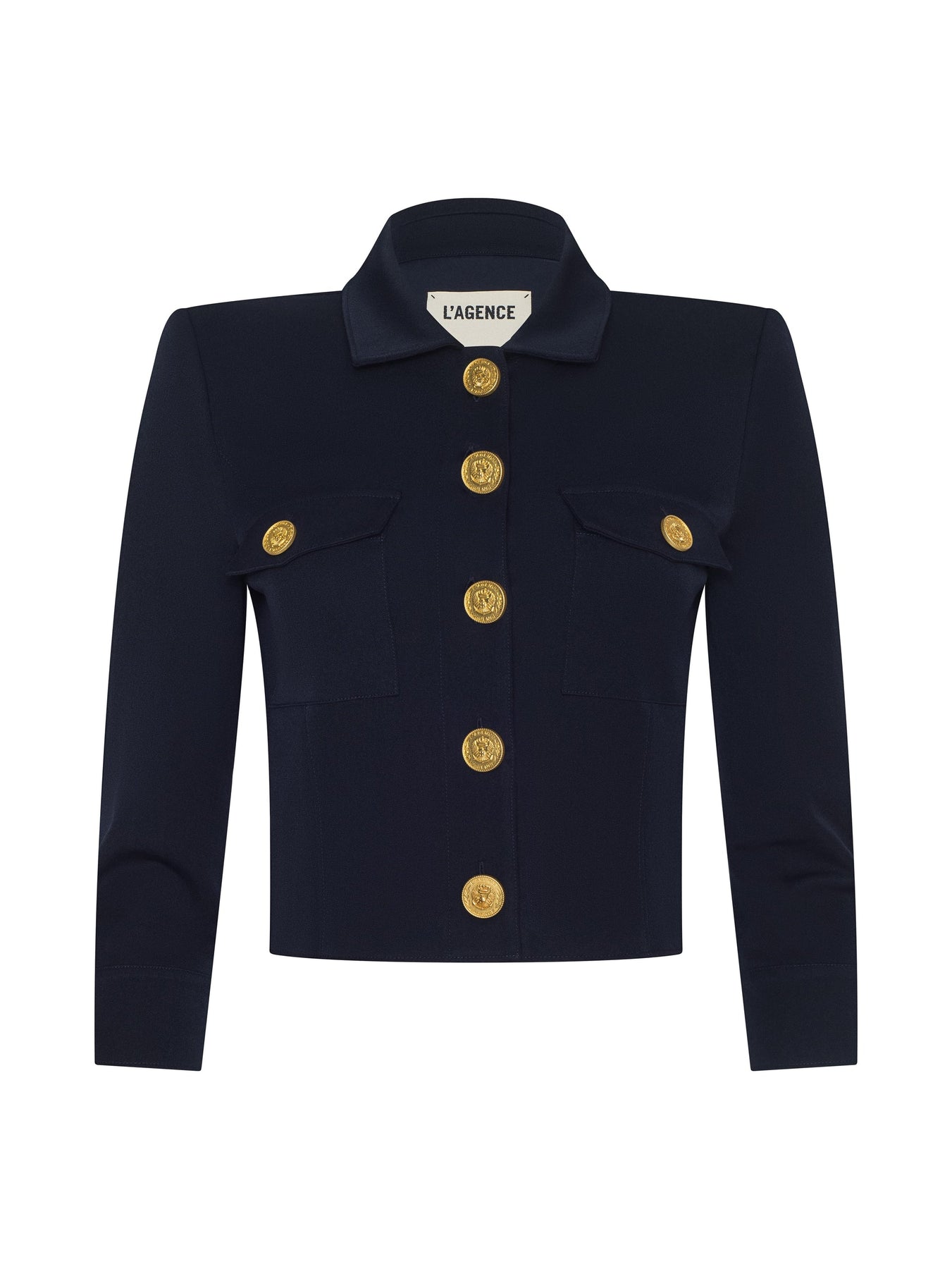 Our bestselling three-quarter sleeve jacket, now in midnight navy. A strong shoulder and tapered silhouette create flattering definition. Wear it as a top or second layer.